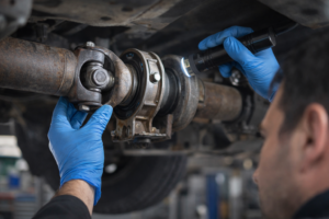 Lors de l’inspection des croisillons, examinez les joints pour des fuites de graisse, ce qui peut indiquer un joint défaillant. Inspectez également l’état des boulons et des écrous pour détecter tout desserrage ou dommage. Les soufflets CV doivent également être vérifiés pour des fissures ou des déchirures. Une attention particulière doit être accordée aux capuchons de protection qui empêchent la contamination par la saleté et l’humidité. En prenant le temps d’effectuer ces vérifications, on peut éviter des problèmes futurs et assurer le bon fonctionnement de l’arbre de transmission.